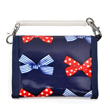 キッズウォレット(財布) チェーン付き ポルカドットとストライプのフレンチリボン(ネイビー) (お財布 キッズ 子供 財布 女の子 小学生 キッズウォレット チェーン コインケース こども 紐付き 中学生 子ども リボン)
