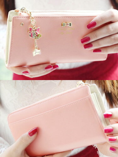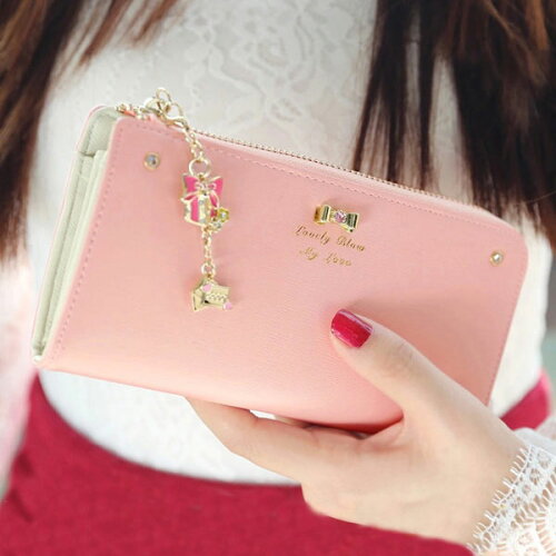 【送料無料!】【入荷済!】リニューアルして再登場!大人気♪リボンチャーム付き レディース財布 可愛いチャーム付き 婦人財布 ロングウォレット 可愛い かわいい レデイース ladies 女性用 ウィメンズ 財布 長サイフ