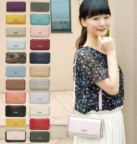 お財布ポシェット cachecache 財布 スマホ 多機能 ポシェット レディース クラッチバッグ ウォレットショルダー リボン raun-40360 カシュカシュ ショルダー 小銭入れ 送料無料 大容量 バッグ 斜めがけ お財布ショルダー ショルダーバッグ 01-00-40360- スマホバッグ